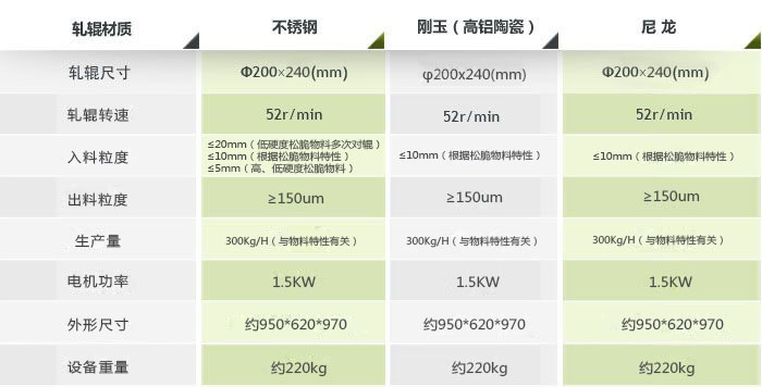 五、對輥式破碎機參數
