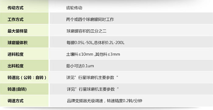 表二:360度旋轉(zhuǎn)行星球磨機主要參數(shù)