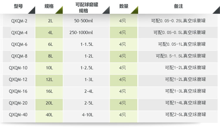 表一: 360度旋轉(zhuǎn)行星球磨機配罐參考