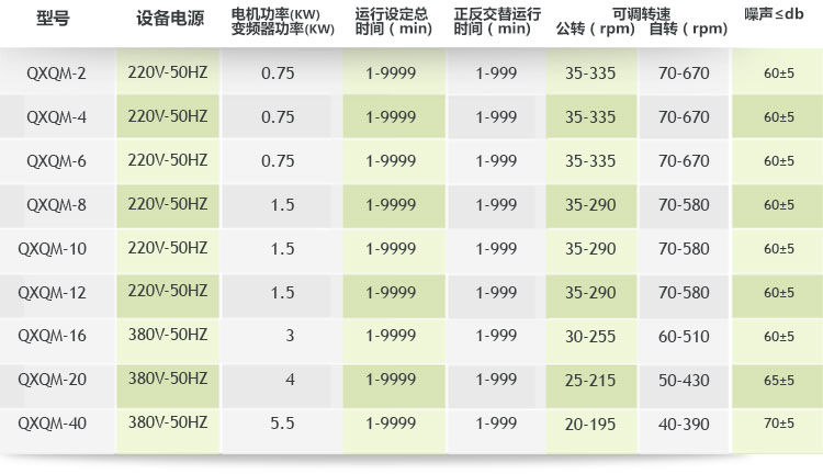 七、360度旋轉(zhuǎn)行星球磨機參數(shù):