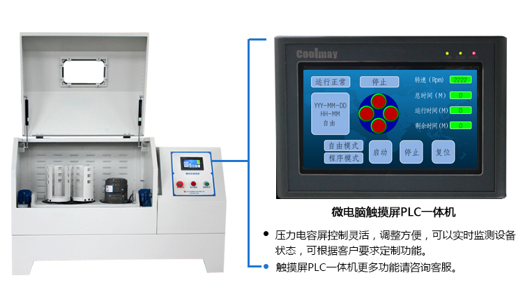 微電腦行星球磨機是在常規行星球磨機基礎上配置觸摸屏操作控制系統,進一步提高設備檔次及操控性能,微電腦行星球磨機主要為滿足對設備品質及操控性能提出更高要求的用戶。